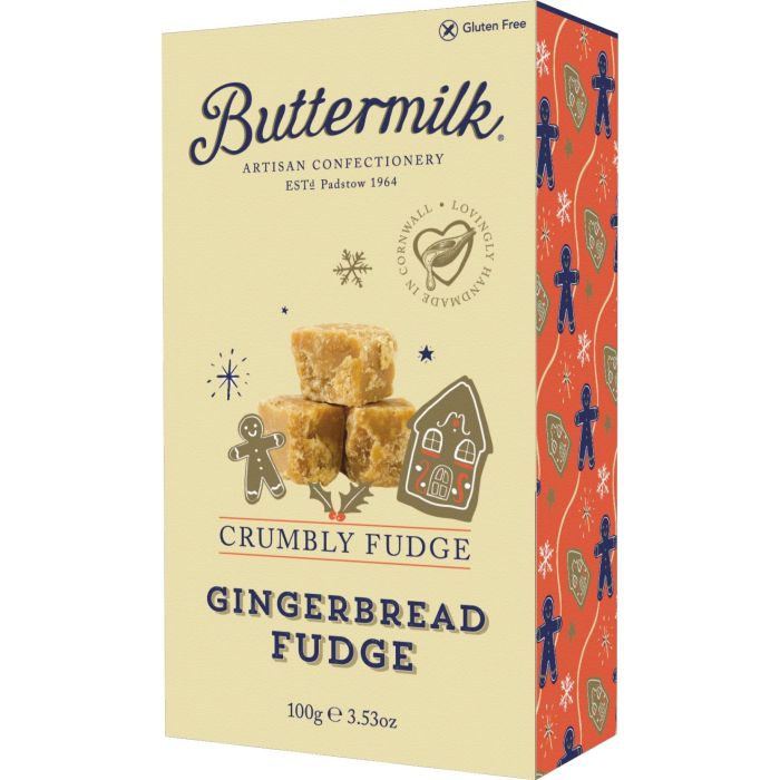 Full of festive flavor, this crumbly Gingerbread Fudge from Cornish confectioners Buttermilk is gently spiced with ginger and a touch of cinnamon to create a tongue-tingling tasty, warming winter treat. A perfect Christmas gift for any fan of fudge.